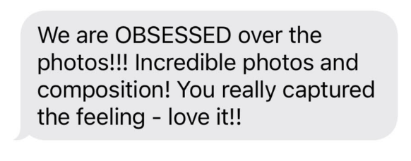 Let’s jump on the phone and ensure my work style and general aesthetic matches what you are looking for during your event or session. Feel free to send over any inspiration pictures or desirable locations you’d like to shoot at.